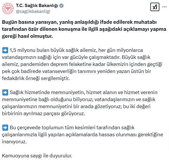 Sağlık Bakanlığı resmi sosyal medya hesabı üzerinden konuya ilişkin basın açıklaması yayınladı.